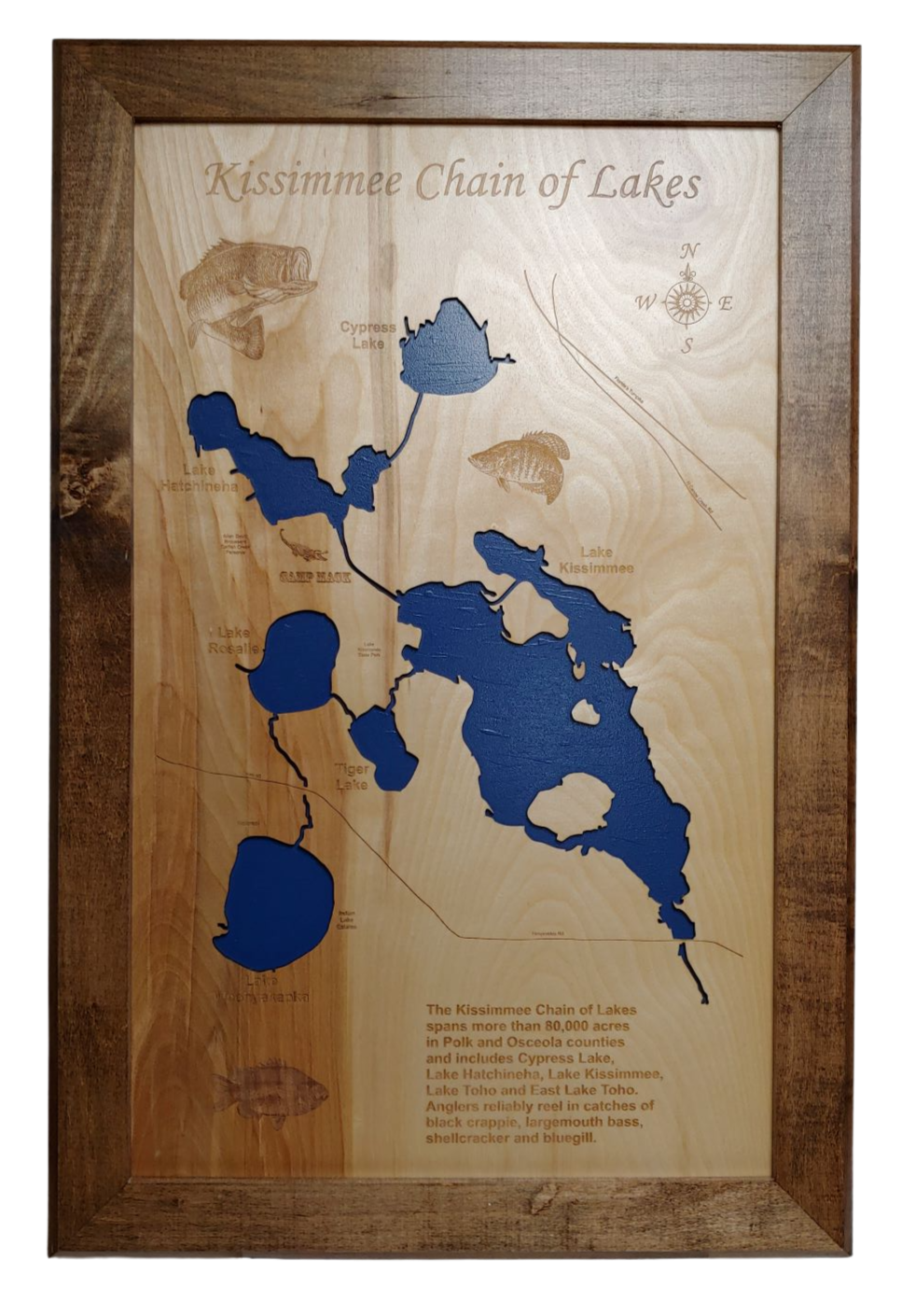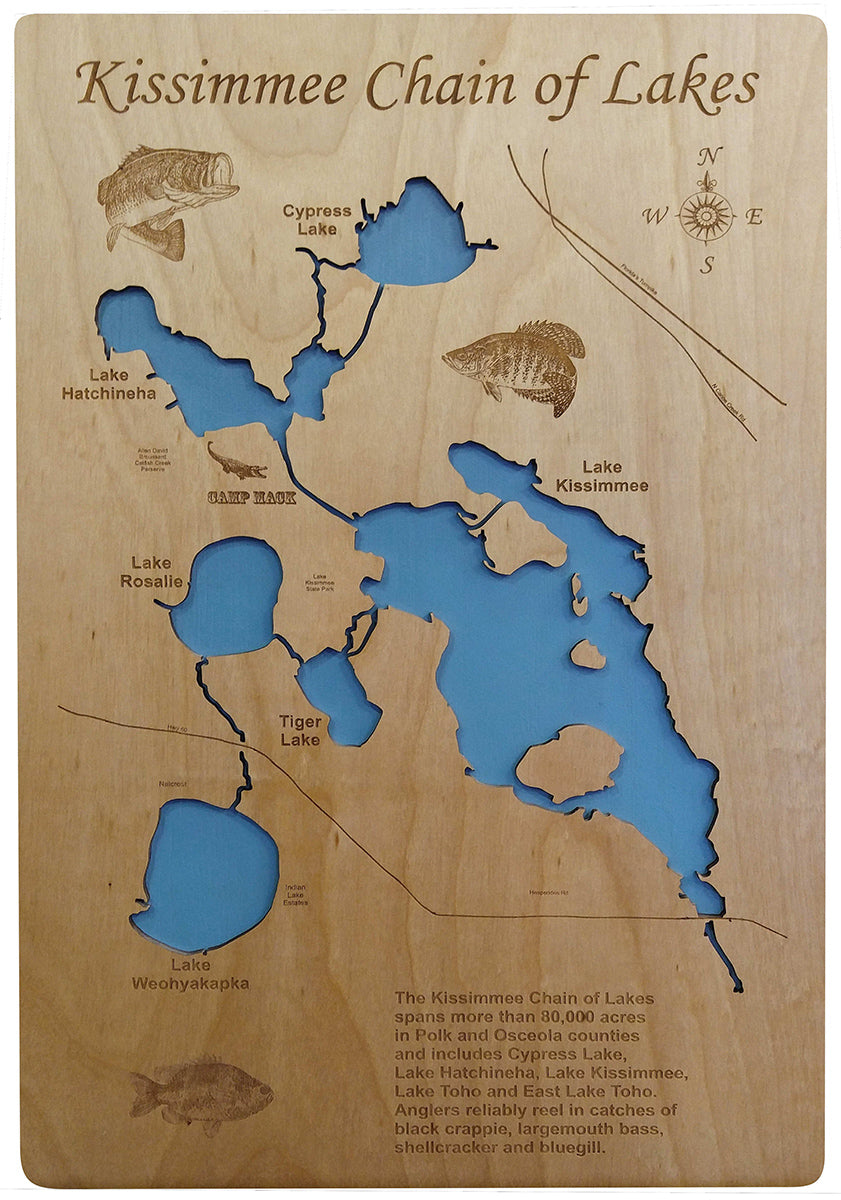 Kissimmee Chain of Lakes, Florida Laser Cut Wood Map