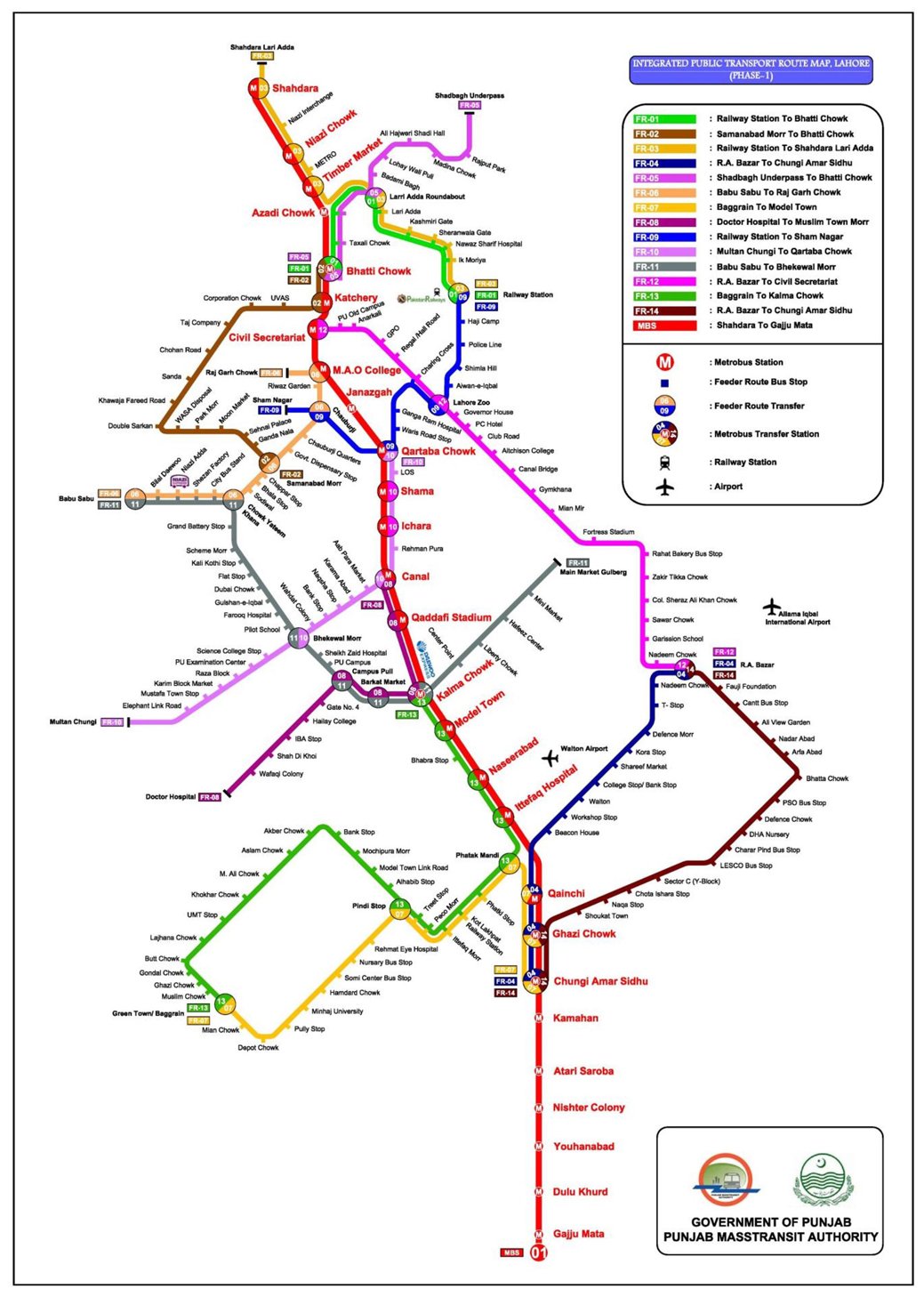 Lahore Feeder Routes Map (Phase I) | Punjab Masstransit Authority